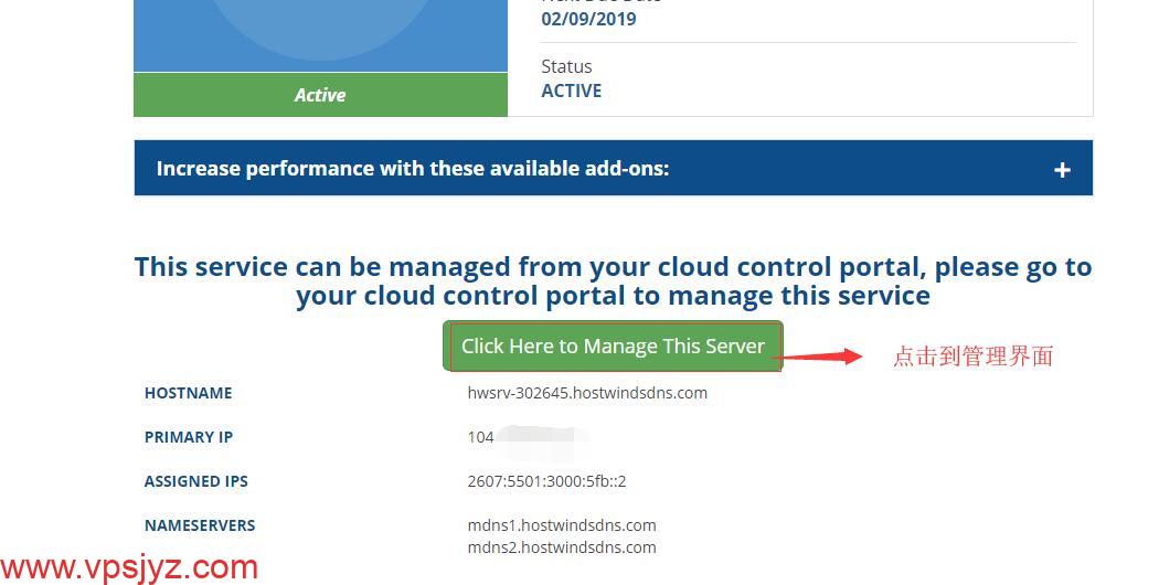 1、访问 https://clients.hostwinds.com/clientarea.php,点击你的Service,如下图所示: