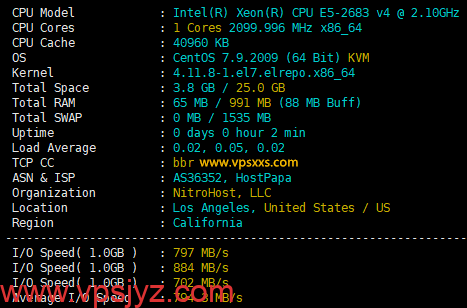 ColoCrossing美国洛杉矶新机房VPS硬件测试